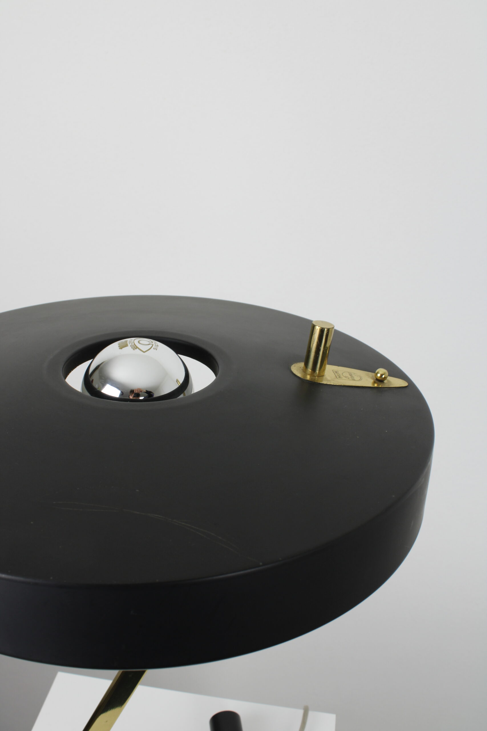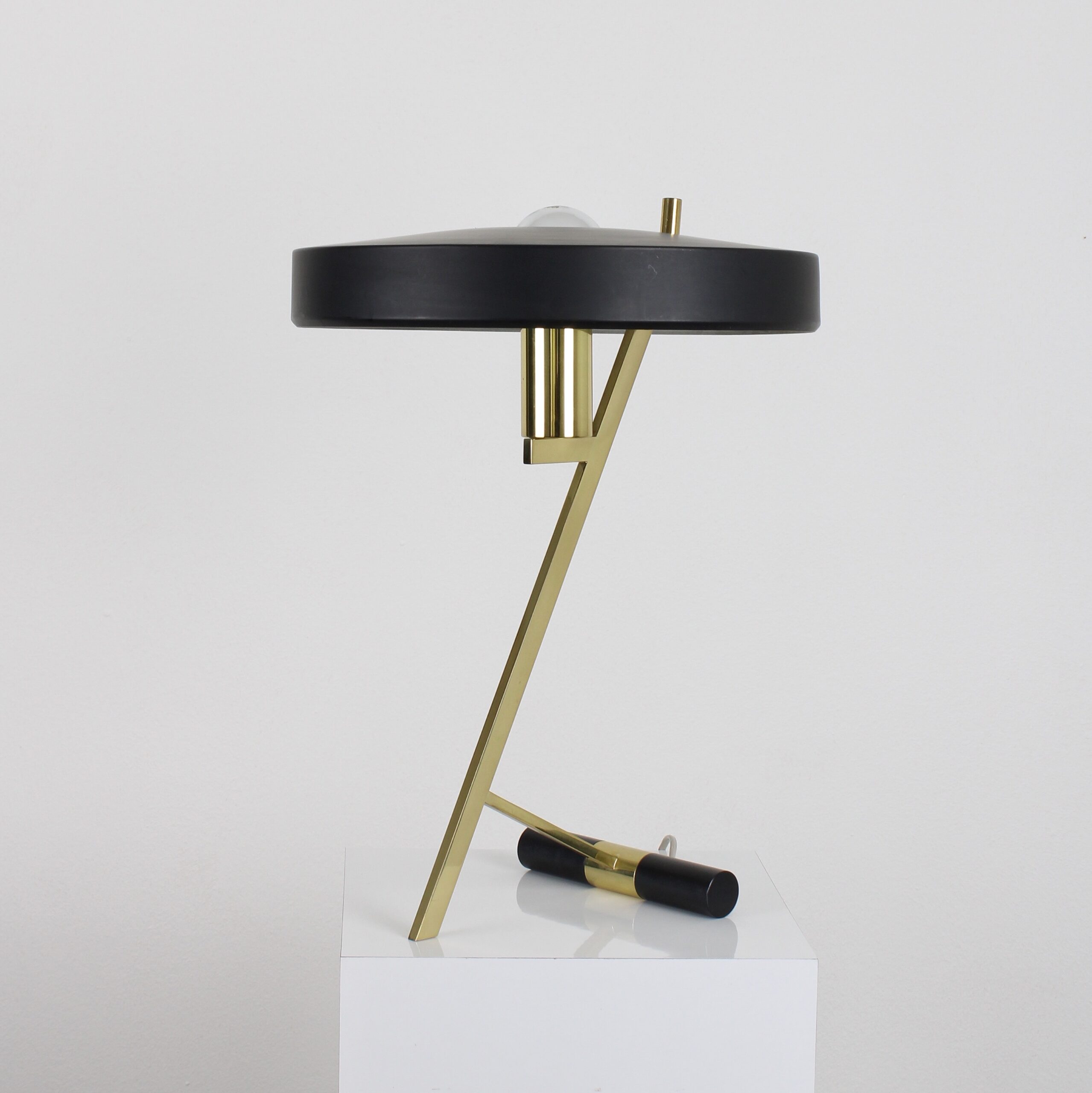 Iconic desk lamp designed and made by Philips in the 1960s. This lamp has the shape of a Z and is made of brass and metal. A nice and rare lamp in very good original condition. This lamp includes the original Philips mirrored light bulb from the 60s.