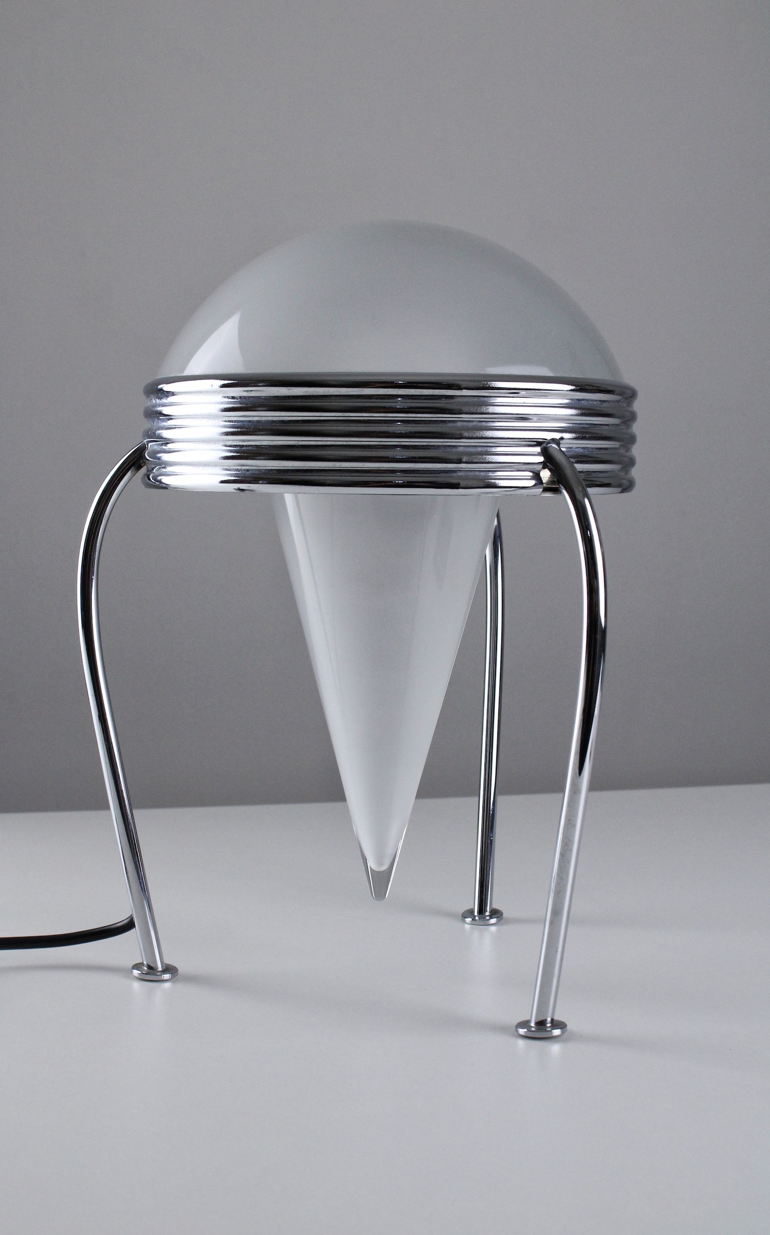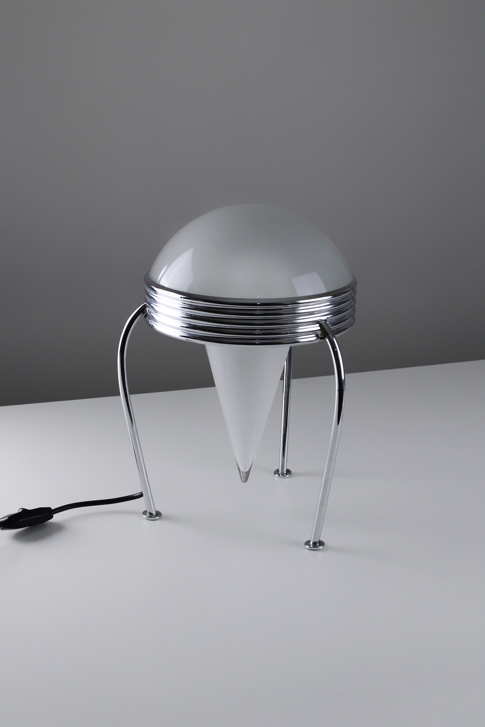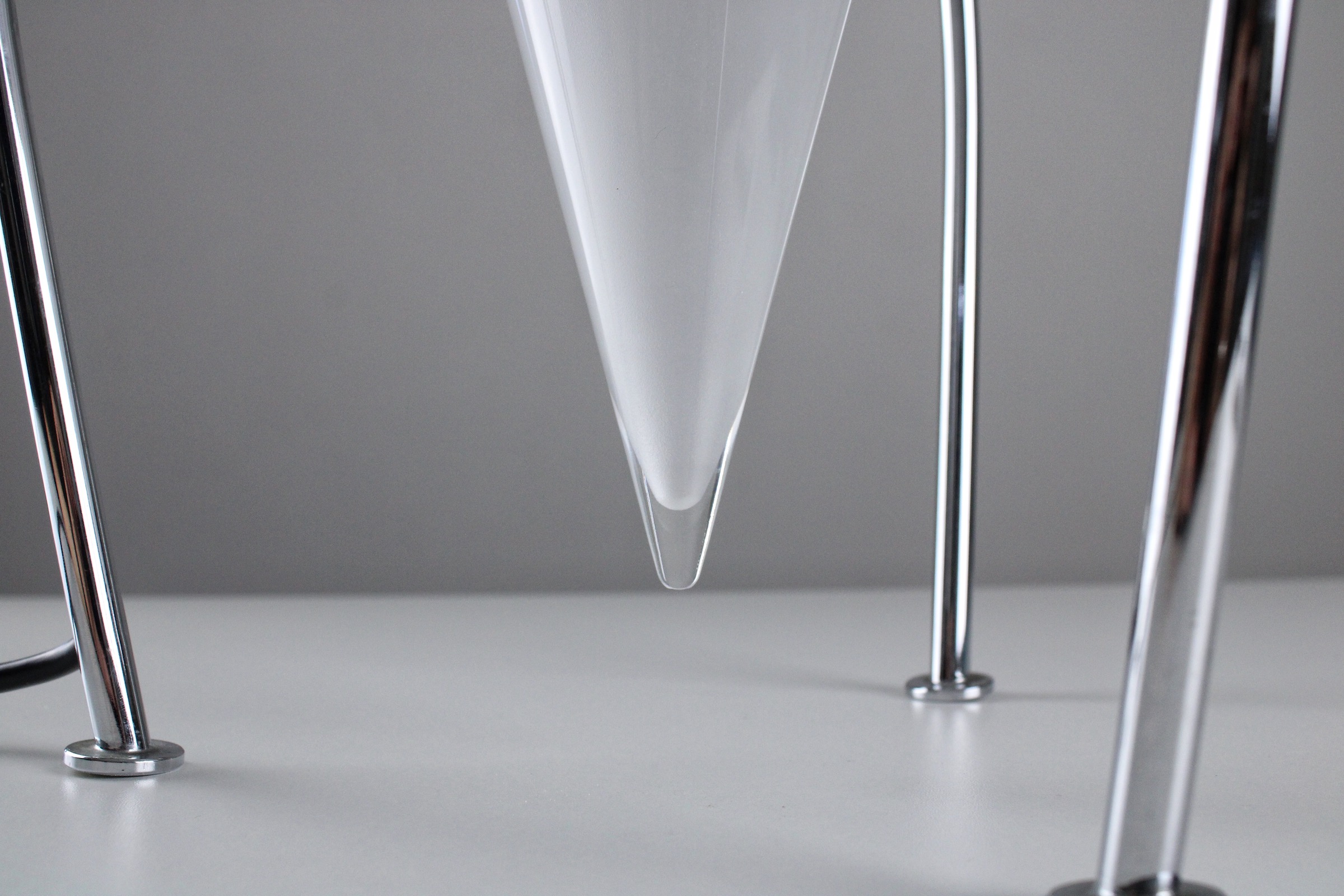 Rare table lamp model Numero Trenta made by Bieffeplast in Padova. Designed by Massimo Iosa Ghini in 1990. Impressive design in the style of Memphis. Made of chrome plated metal and glass. Overall condition is excellent.