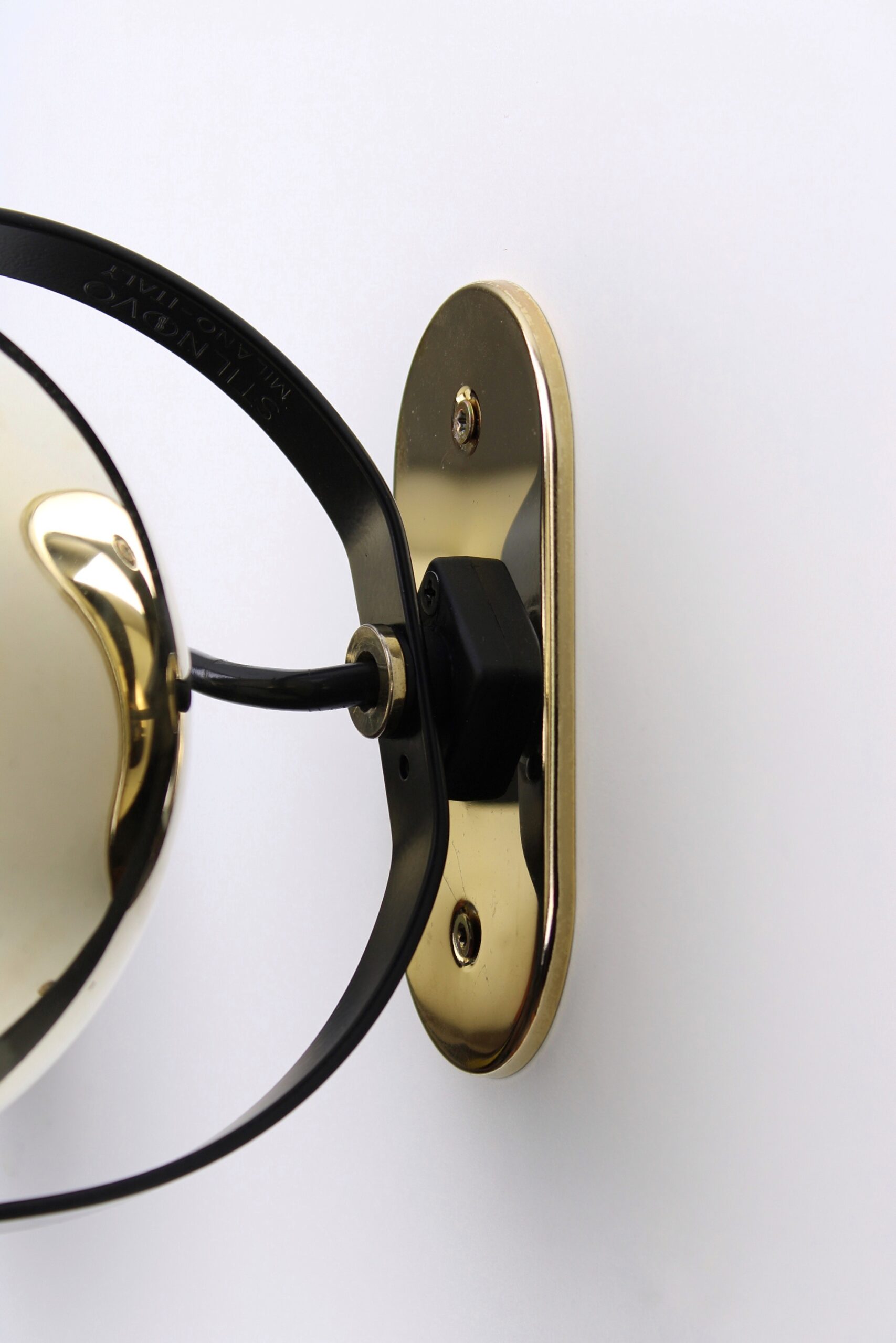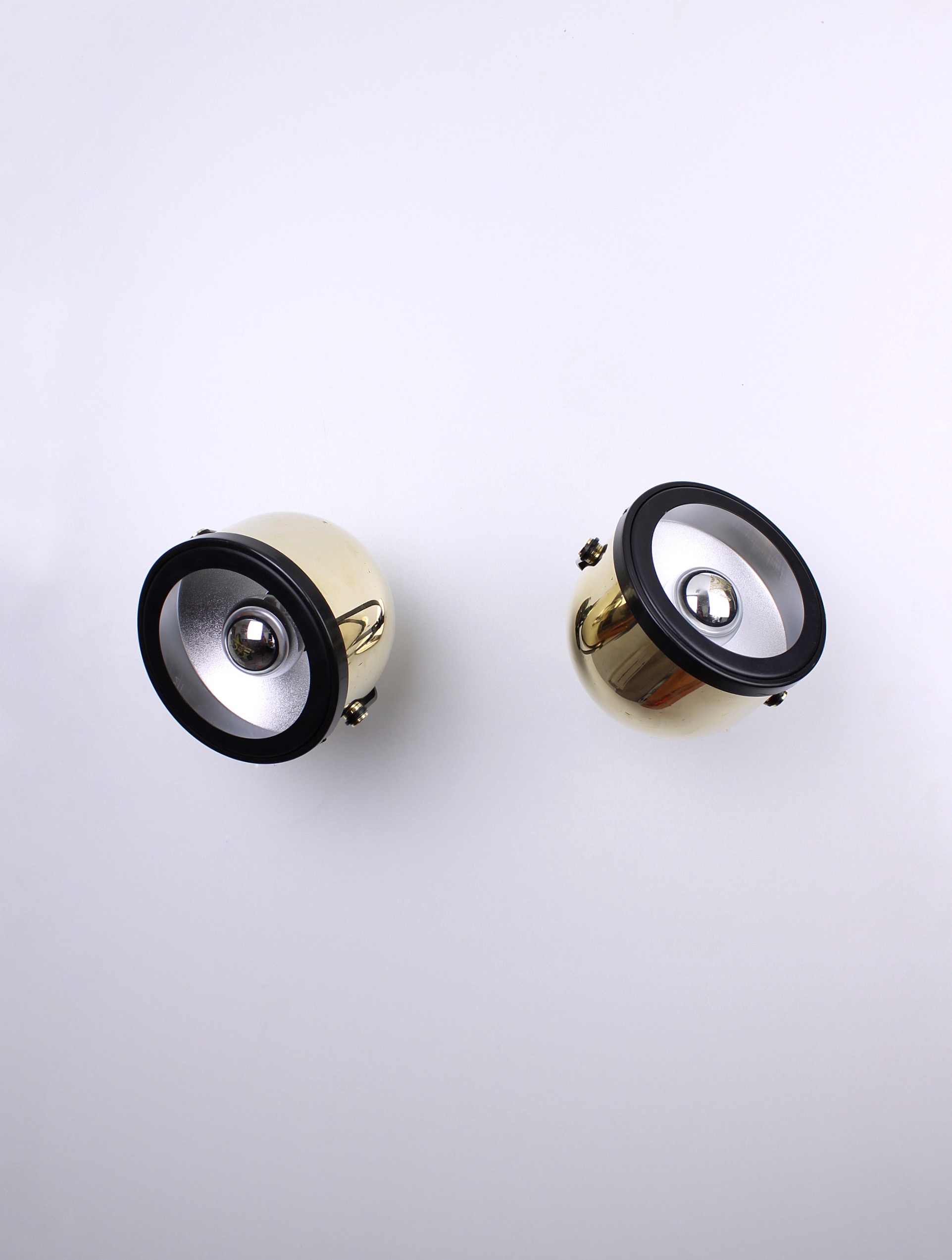 Set of two swiveling wall sconces in brass, designed by Livio Castiglioni and Gae Aulenti for Stilnovo in 1971. This series by Stilnovo was produced in a very wide range of models, including various table, wall, pendant, and floor lamps with the same shade. All of them were made of chrome-plated metal or brass. Perfect as bedside lamps. Both lamps are in excellent condition.