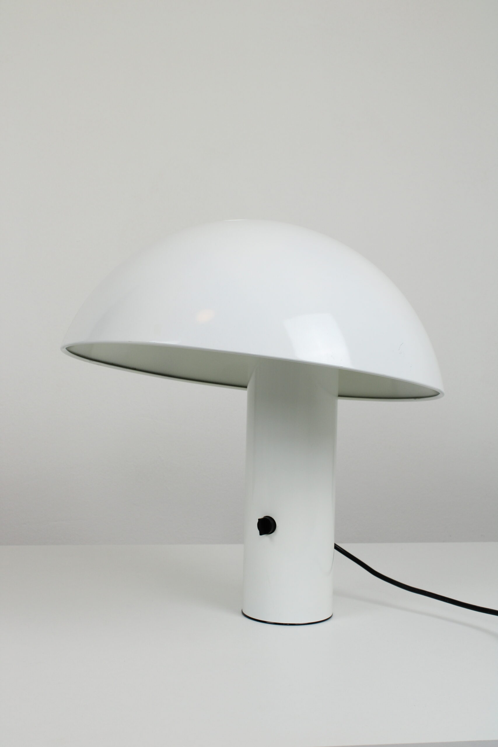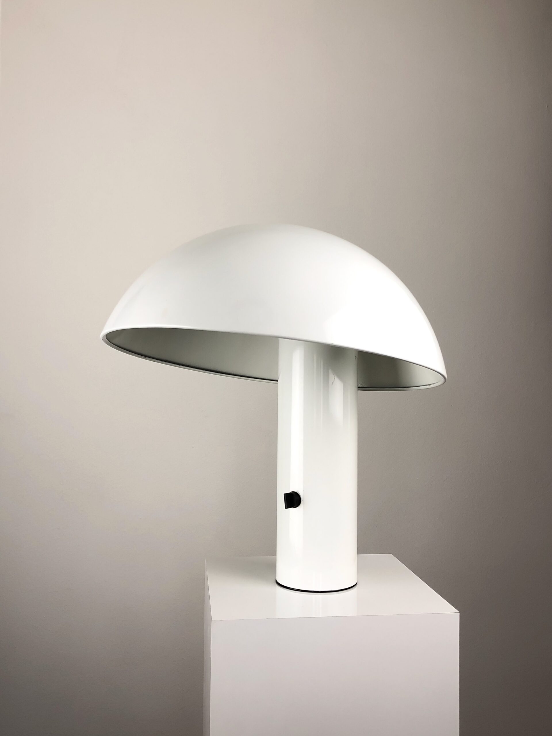 White metal Vaga table lamp. Designed by Franco Mirenzi in 1978 and produced by Valenti Luce in Italy.